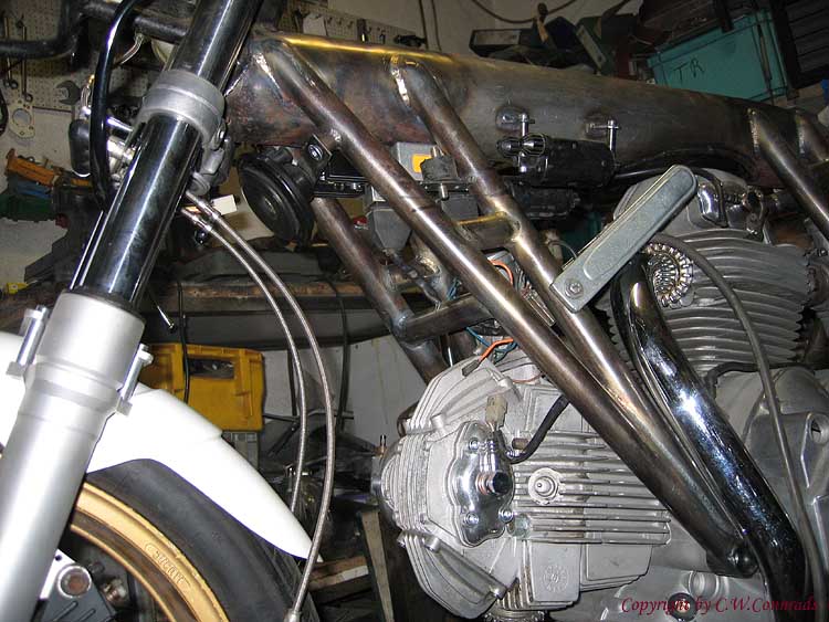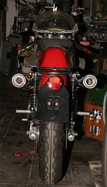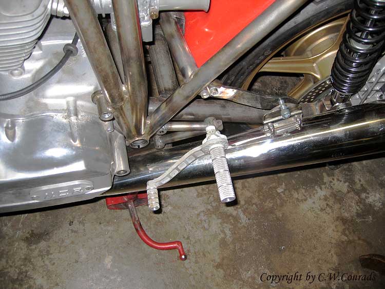 Die elektrischen Bauteile finden ihren Platz | CWC Ducati No. 4 + No. 5 | Beispiel einer Auslegung der Fußrastenanlage |